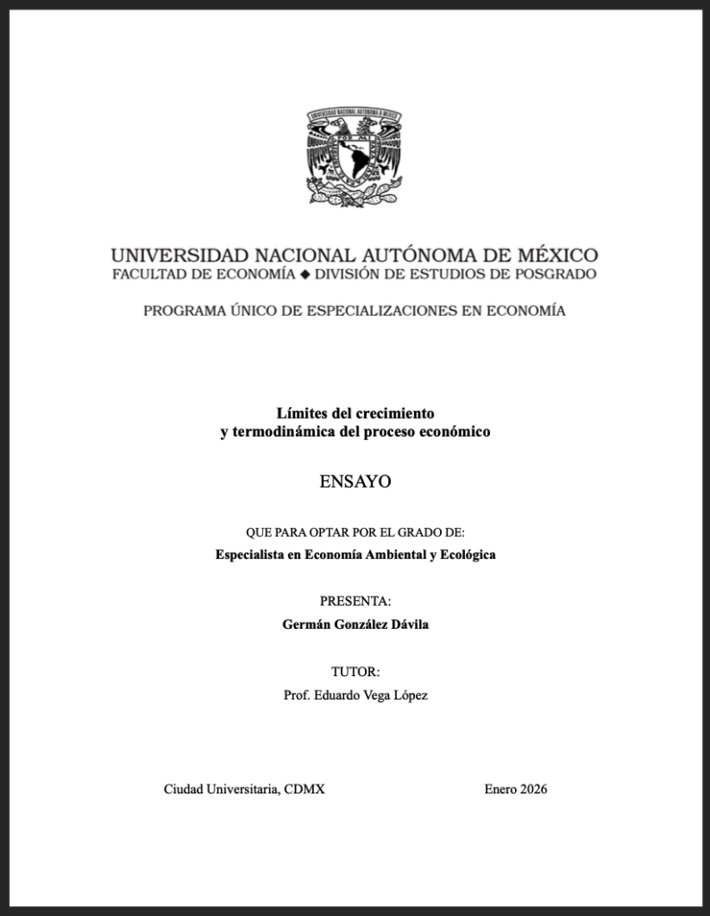 Main critics of economic theory from the point of view of thermodynamics. He developed, although left unfinished, the bioeconomic theory. His legacy provides the scientific foundation for ecological economics, and the inspiration for the various zero-growth, «strategic retreat,» or degrowth movements.